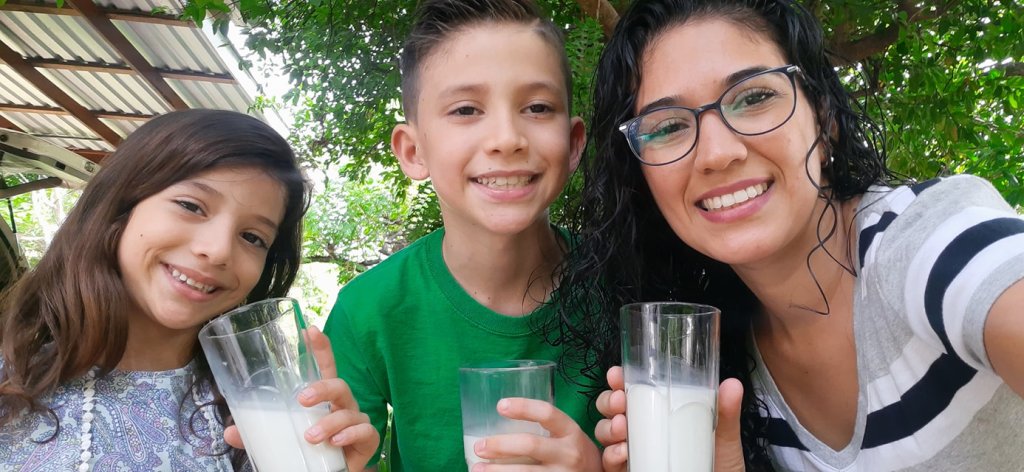 Tengo dos niños de 6 y 9 años. Yo tengo 30 años y estoy casada. Mi esposo trabaja y me tocó empezar todo solita. Aún así, creo que somos un equipo porque mis hijos aman a las cabras y son felices ayudando a cuidarlas.