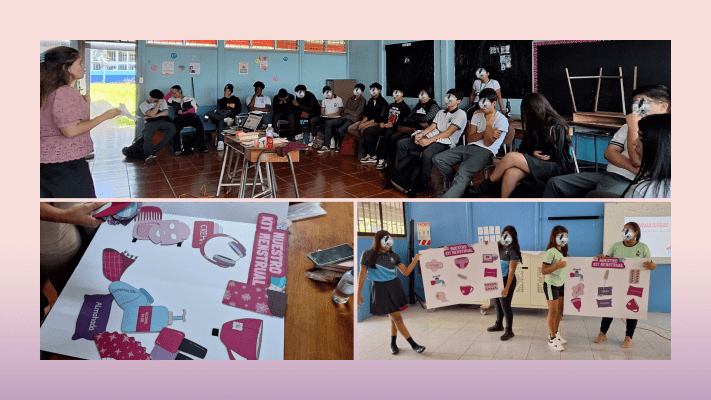 Durante el 2023, realizamos talleres en escuelas y colegios, así como la elaboración de guías y juegos sobre la menstruación. Gracias a la colaboración de UNFPA, desarrollamos actividades educativas dirigidas a jóvenes y docentes con el objetivo de informar, educar y, sobre todo, fomentar espacios de liderazgo para los jóvenes, permitiéndoles realizar incidencia en sus instituciones educativas y comunidades. Se han visitado tanto colegios públicos como privados, abarcando áreas rurales y urbanas de Costa Rica.