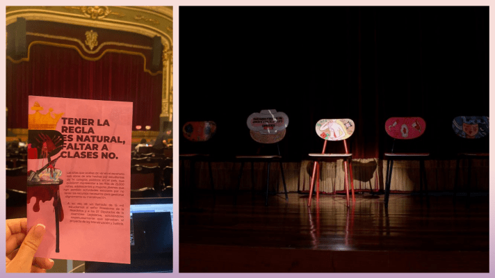 También llevamos a Cambiemos la Regla al Teatro Nacional. Como parte de la Campaña se realizó una actividad en alianza con el Musical Mujercitas, donde se llevó las sillas decoradas por los y las estudiantes para ser expuestas previo a la función. Antes del inicio de la función, las sillas fueron colocadas en el escenario frente al telón, las personas de la audiencia recibieron un volante con información y escuchar una narración sobre la Pobreza Menstrual y cómo afecta la vida de las niñas y las adolescentes.
